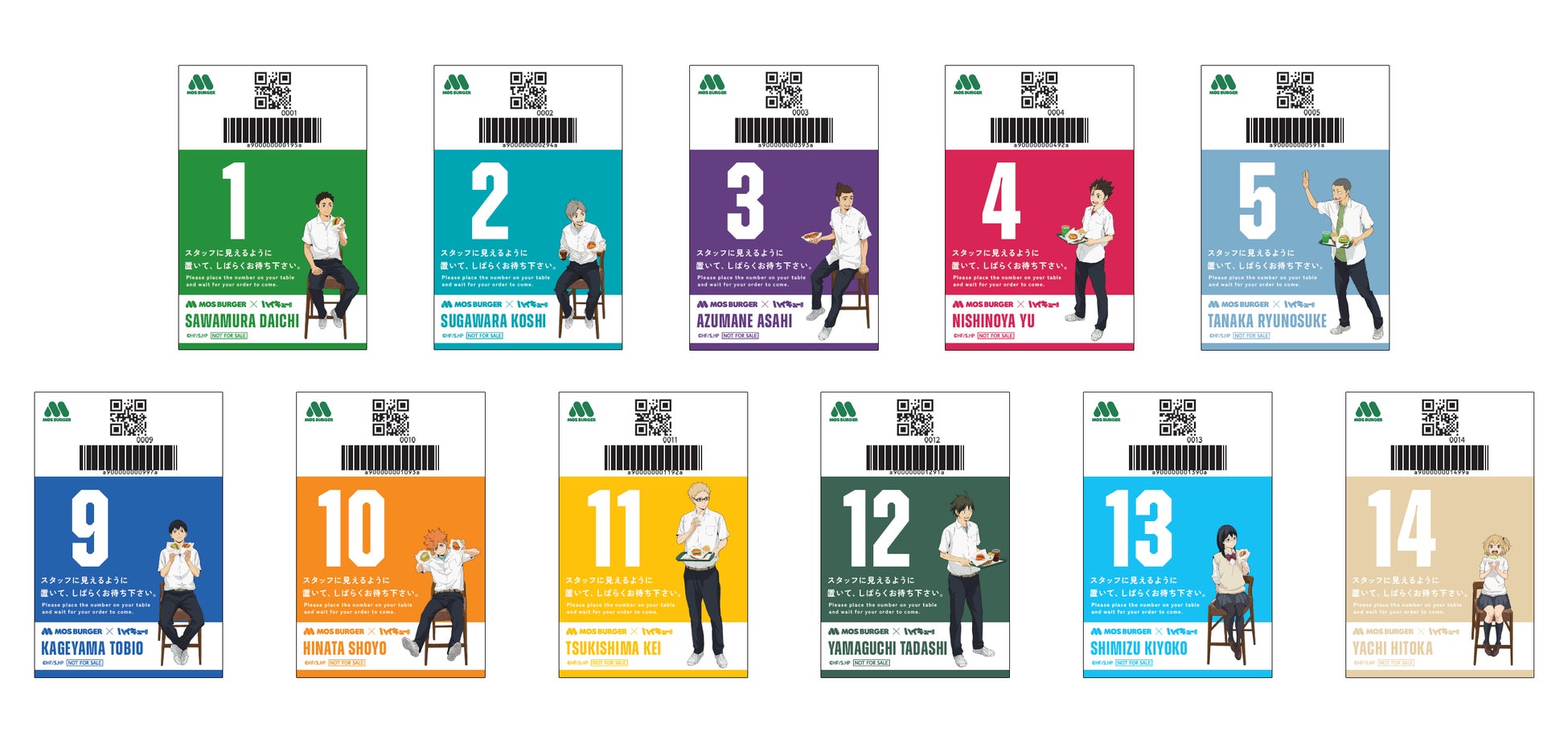 ●内容:商品注文時に、「ハイキュー!!」に登場する烏野高校排球部11名のコラボビジュアルデザインの番号札をお渡しします。