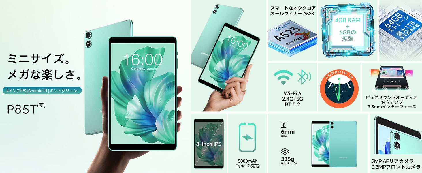 Teclast「P85T」の広い視野角と1280×800の高解像度を備えた8インチIPSスクリーンの輝きを体験してください。画面の細部と消費電力の完璧なバランスを実現し、長時間の視聴セッションを可能にします。6mmの狭いベゼル、重さは335gだけです。片手で把握でき、外出時の持ち運びにも便利です。