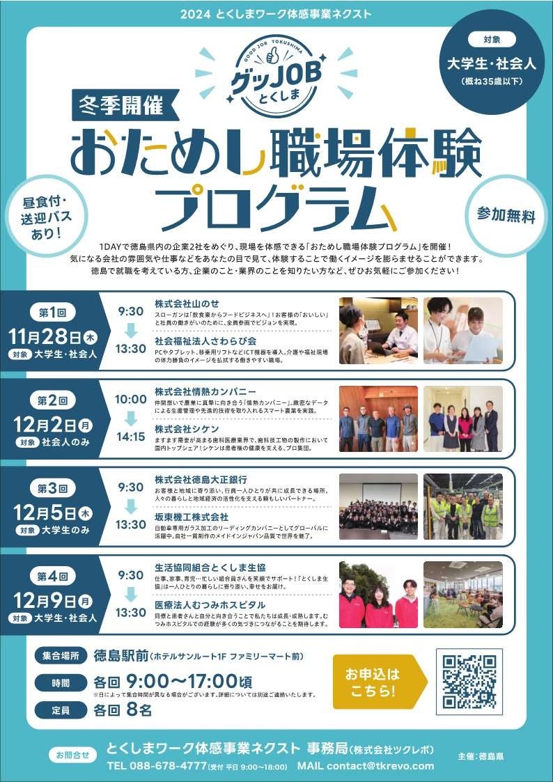 1DAYで徳島県内の企業2社をめぐり、現場を体感できる「おためし職場体験プログラム」を開催します!