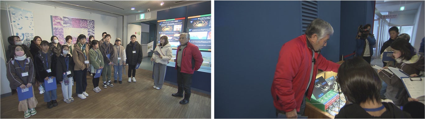 越前町にある越前がにミュージアムでは、主任研究員の大間憲之さんが越前がにの成長過程や資源管理の歴史を丁寧に説明しました。