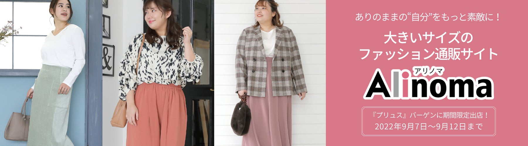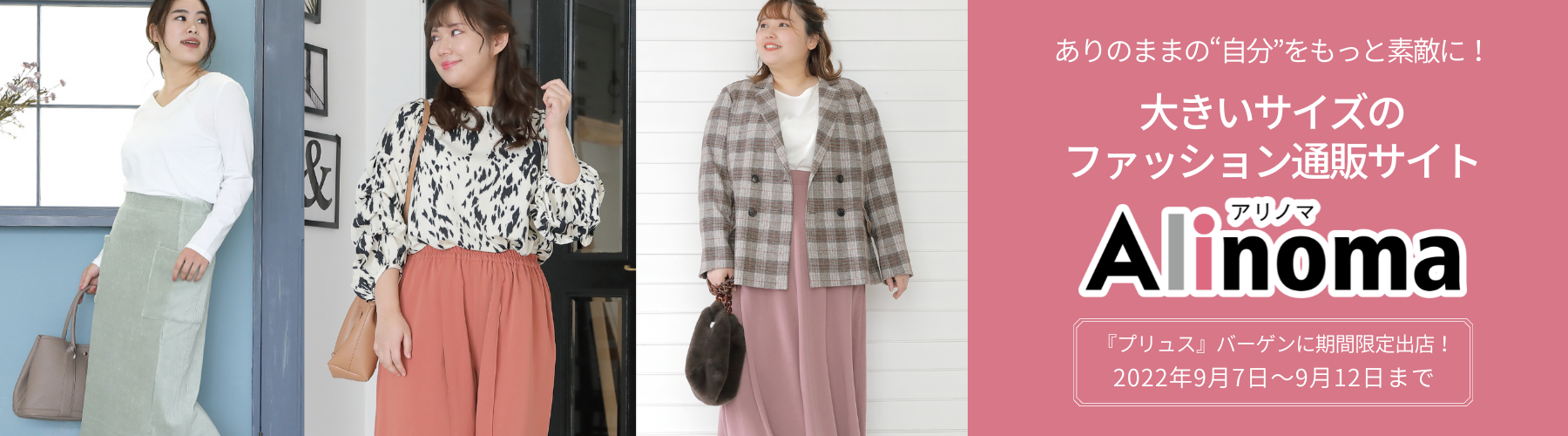 L~10Lサイズのプラスサイズ・ファッションECモール『Alinoma』が阪急うめだ本店『プリュス』バーゲンに9月7日から期間限定初出店!