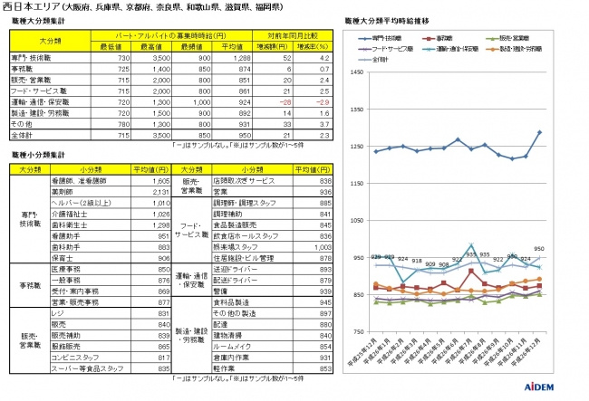 - 西日本エリア全体の平均時給は、前年同月比21円増の950円