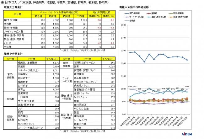 総合人材情報サービスの株式会社アイデム(本社:東京都新宿区 代表取締役社長:椛山 亮)は、当社発行の新聞折込求人紙『しごと情報アイデム』紙面より、平成26年12月のパートタイマー募集時平均時給を集計いたしました。