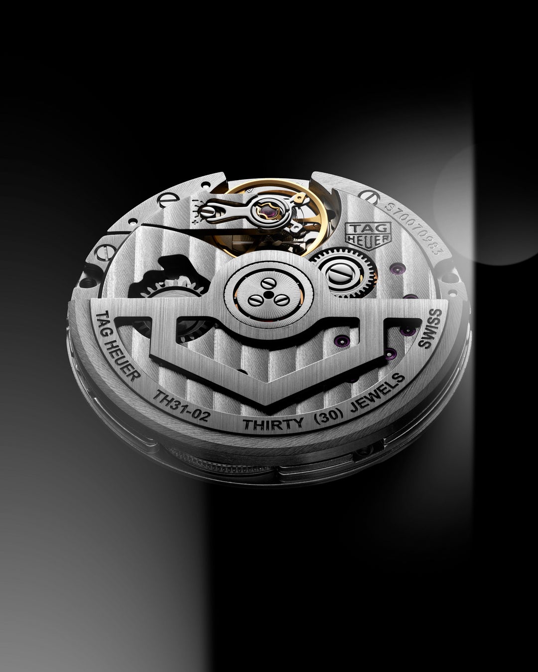 新作「タグ・ホイヤー カレラ デイデイト」を駆動するのが自社製ムーブメントTH31。AMTとの共同開発によりタグ・ホイヤー専用に製造されたTH31-02とTH31-03(ツインタイム用)は、約80時間という驚異的なパワーリザーブを実現し、5年間の延長保証も適用されます。こうしたムーブメントは、シールド型のローターがケースバックから覗き見ることができるだけでなく、高級感あふれる仕上げが施され、コレクターや愛好家をうならせるクラフツマンシップのさらなるオーラを纏っています。