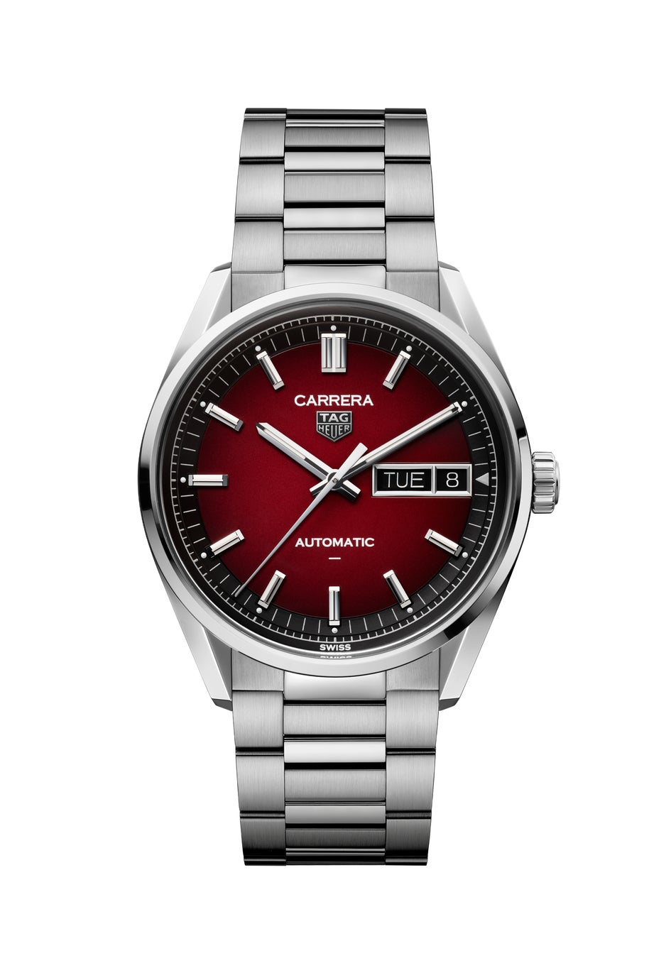 それぞれのモデルに独自の個性を与えているのがダイヤル。「タグ・ホイヤー カレラ」のシグネチャーブルーを纏ったモデルは、クラシックなエレガンスを醸し出すサンレイ加工サテン仕上げが施されている一方、スモーキーレッドのオパーリンダイヤルは、洗練されたモダンなタッチを添えています。また、控えめな上品さを好む人のエレガントなチョイスとなるのが、ブラックオパーリンのダイヤル。ブレスレットは、ステンレススティール製のタイプと、サテン仕上げを施したステンレススティールと18K 5Nローズゴールドを組み合わせたタイプの2種類があります。汎用性を高めるためにこのコレクションにさらに顔を並べるのは、グレイン仕上げを施したブラックダイヤルのモデル。印象的なレッドラッカー仕上げのセンター針と鮮やかなブルーでダイヤルにアクセントをつけ、スポーティでダイナミックな魅力をプラスしています。さらに、ロジウムコーティングや18K 5Nローズゴールドコーティングを施した針とインデックスなど、慎重に選ばれたディテールがその美観を高めています。