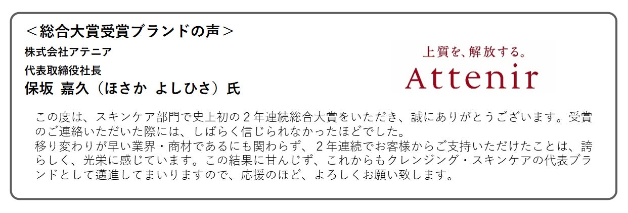 (1)スキンケアカテゴリの2年連続総合大賞は史上初