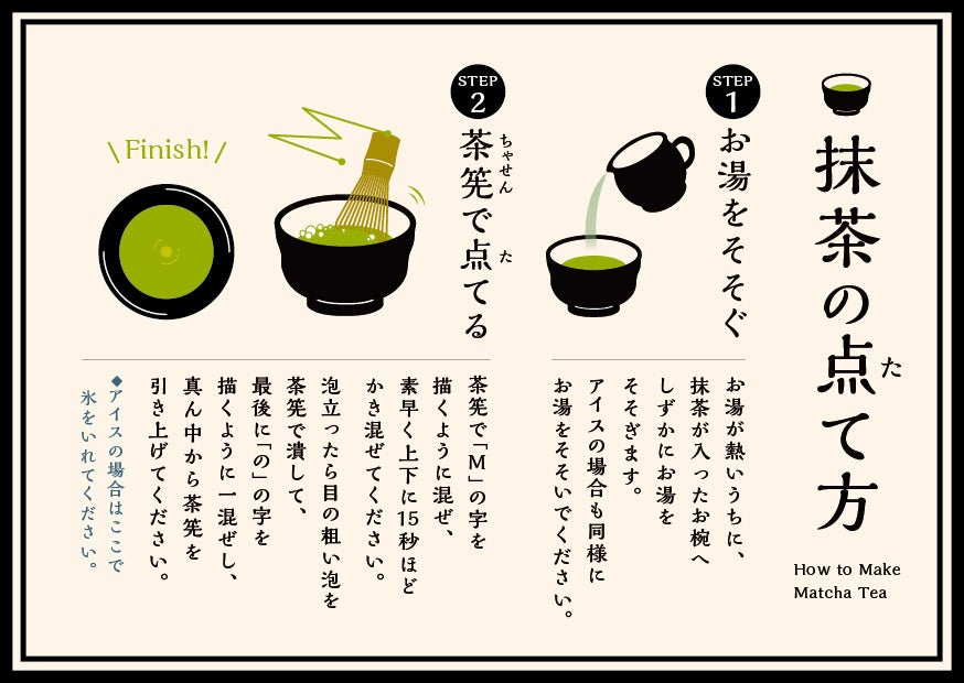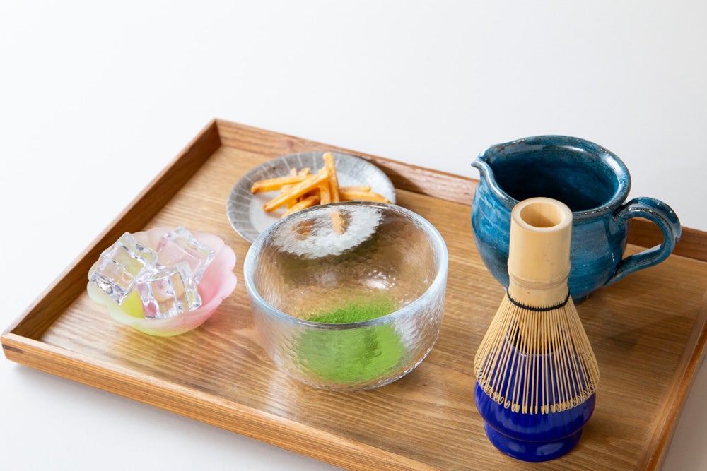 抹茶の粉と熱湯を茶筅(ちゃせん)で混ぜ合わせ、ご自身でお抹茶を点てる体験をお楽しみいただけます。