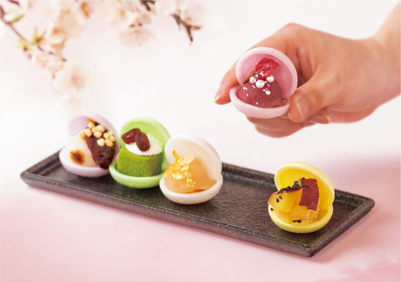 五つの異なる餡や餅を詰め込んだ最中スイーツ。それぞれが織りなす豊かな味わいと、サクサクの最中の食感が魅力です。彩りも美しく、思わず写真に収めたくなる一品です。