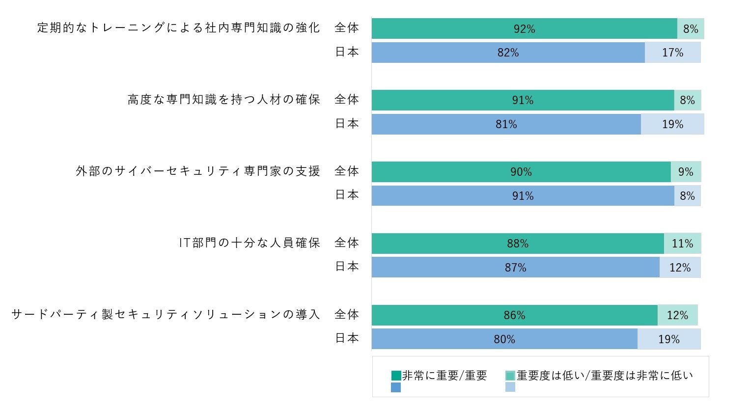 ・定期的なトレーニングによる社内専門知識の強化:92%(日本は82%)