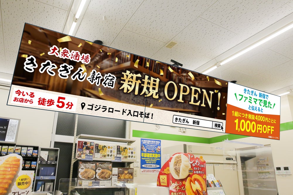 「大衆酒場 きたぎん新宿」および「Pilates KASANE 松戸店」の商圏内のファミリーマート各店舗にて来店を促すCMを放映し、集客効果を検証します。CMには利用期間を限定したクーポン情報を付加し、CMを見た当日など、店側が意図したタイミングでの集客につながるか等も検証します。