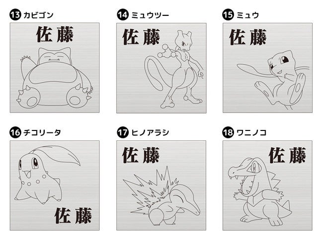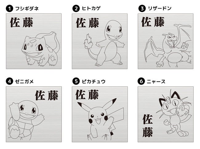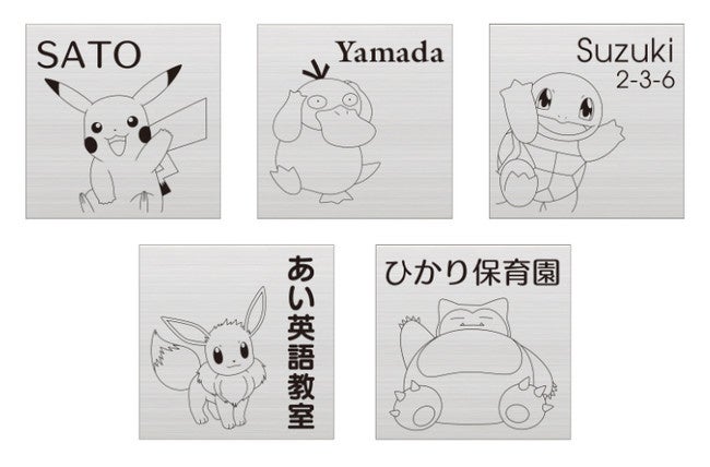 ピカチュウ、イーブイ、リザードンに、ピチュー、トゲピーまで。お気に入りのポケモンが、おうちの玄関でお出迎えしてくれる表札。ローマ字や番地を入れることも可能で、保育園やお教室の看板としても使えます。