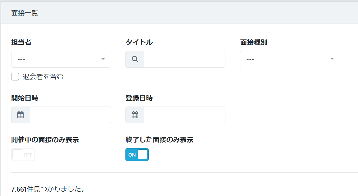 ※面接一覧の検索部分に終了した面接のみ表示のトグルスイッチを追加