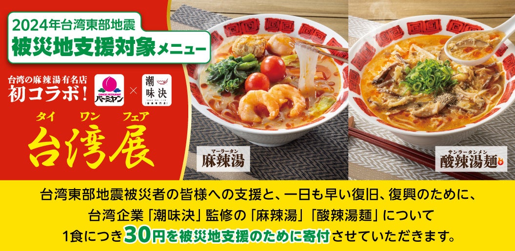 【令和6年 台湾東部地震】緊急支援募金と同額をすかいらーくホールディングスより寄贈 バーミヤン台湾フェア売上の一部を寄付
