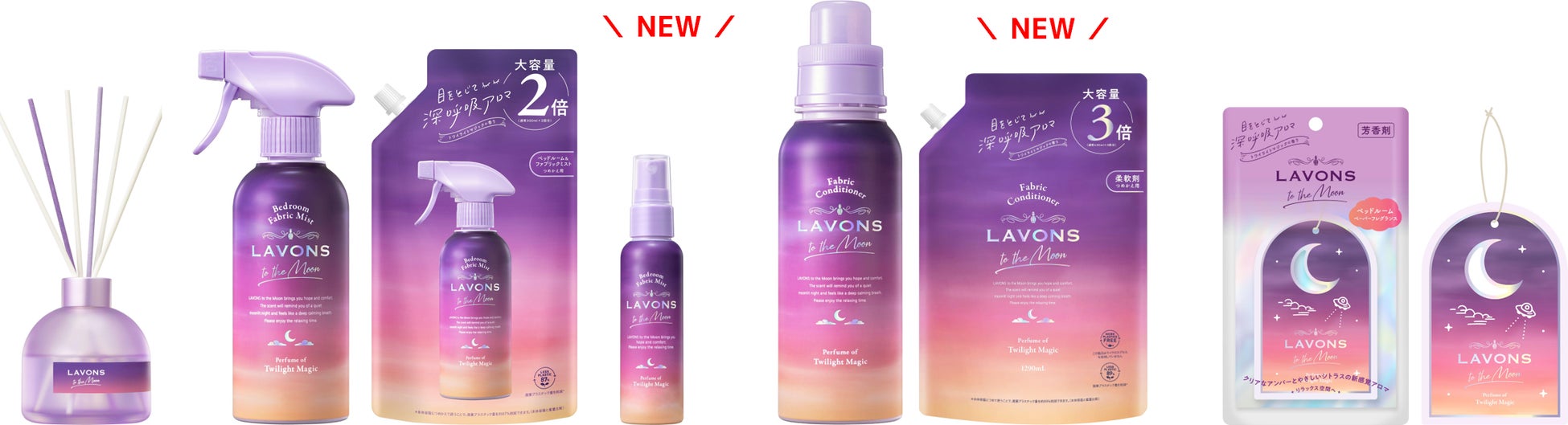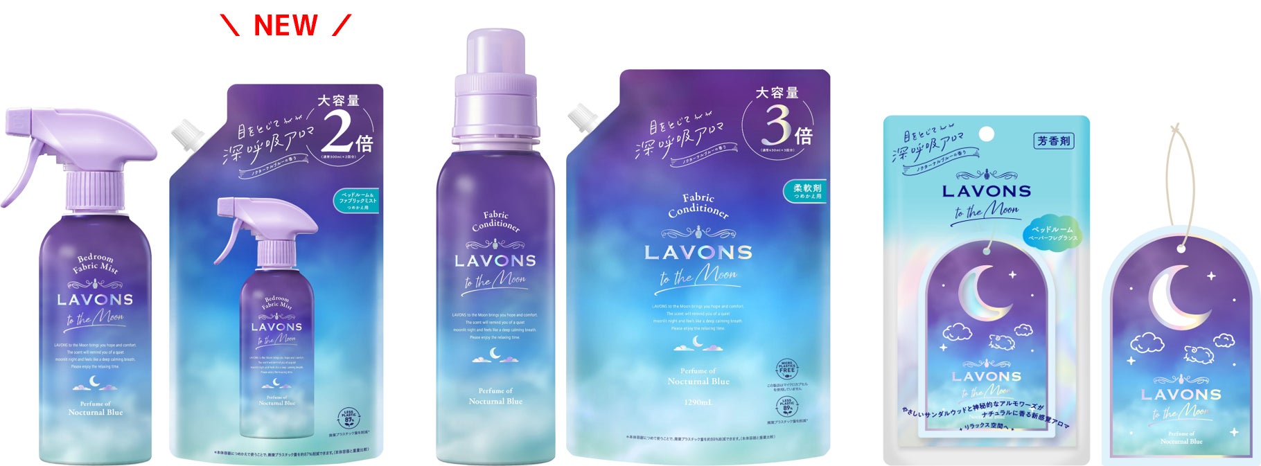 2022年10月の発売以来、『ラボン トゥザムーン(LAVONS to the Moon)』はシリーズ累計300万個※1を突破いたしました。人気の柔軟剤やベッドルーム&ファブリックミストの大容量の詰替タイプも同時発売※2されることで、さらに多くのお客様に癒しの時間を提供いたします。