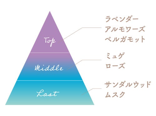 ほんのりとした甘さが穏やかに漂うこの香りで、フワフワと雲の上で眠るかのような優しさと心地よさに包まれ、ゆったりとしたリラックスタイムをお過ごしいただけます