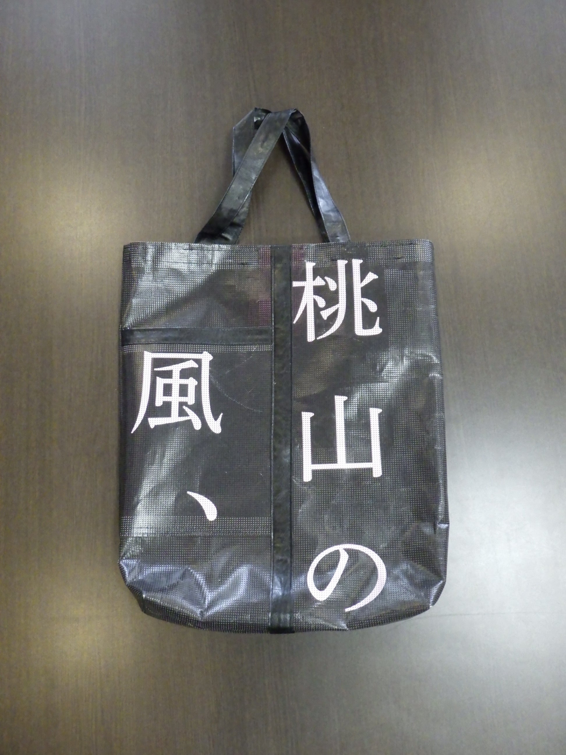 今回は、令和6年12月6日~令和7年1月29日に開催された「桃山三都」展の宣伝幕(メッシュターポリン生地)をアップサイクルしてバックを制作。