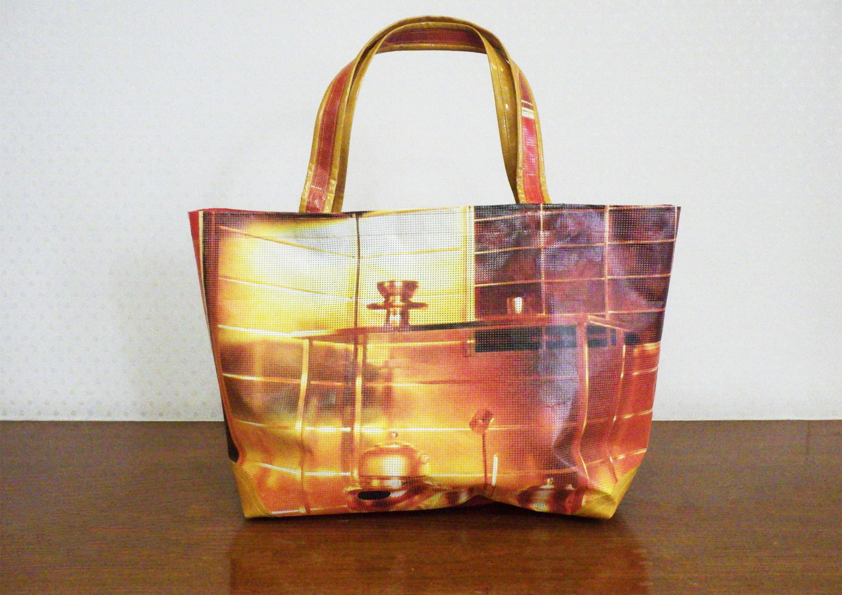 今回は、令和6年12月6日~令和7年1月29日に開催された「桃山三都」展の宣伝幕(メッシュターポリン生地)をアップサイクルしてバッグを制作しています。