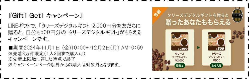 タリーズコーヒーで「LINEギフト」取扱い開始。11月1日より、自分ももらえる!『Gift1 Get1 キャンペーン』がスタート