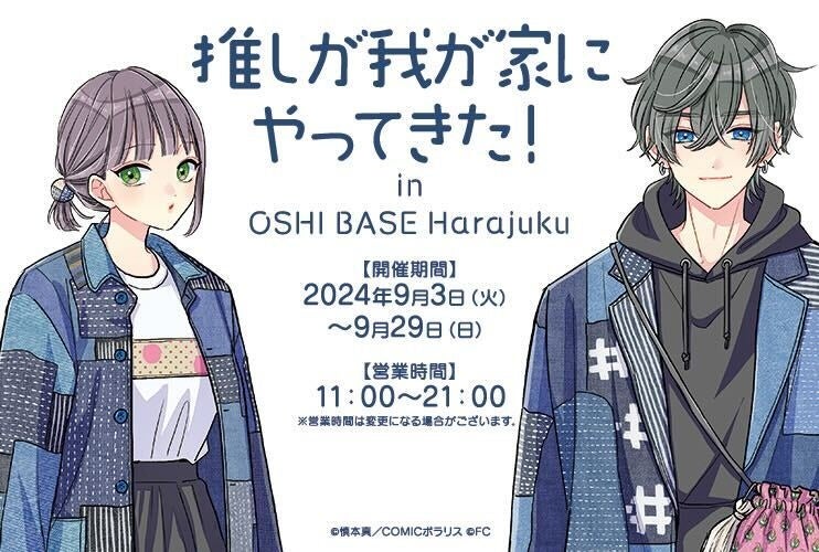 TOPPANホールディングス株式会社のグループ会社である、株式会社BookLive(本社:東京都港区・代表取締役社長:淡野 正)は、当社運営のクリエイター・作品とファンが繋がる新たな「推し活」拠点「OSHI BASE Harajuku」(東京都渋谷区)にて、Webコミック「COMICポラリス」(運営:フレックスコミックス株式会社)の人気マンガ『推しが我が家にやってきた!』の企画展『「推しが我が家にやってきた!」 in OSHI BASE Harajuku』を、明日2024年9月3日(火)より開催いたします。