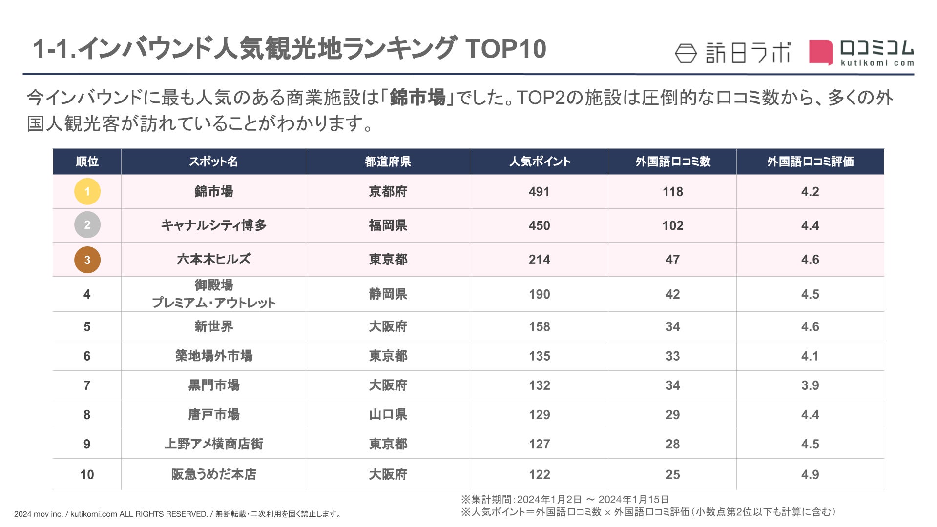 【独自調査】外国人に人気の商業施設ランキングを発表!1位は「錦市場」:インバウンド人気観光地ランキング #インバウンドMEO