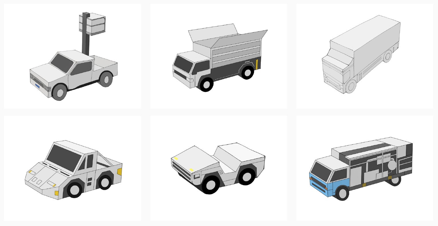 空港で実際に働いている車をペーパークラフトのキットをご用意しています。