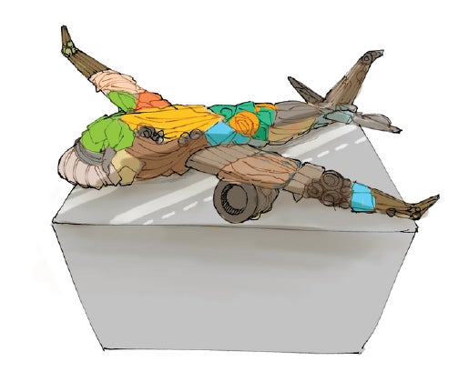 使われなくなったおもちゃや古着・木材などを使って、飛行機を制作しております。