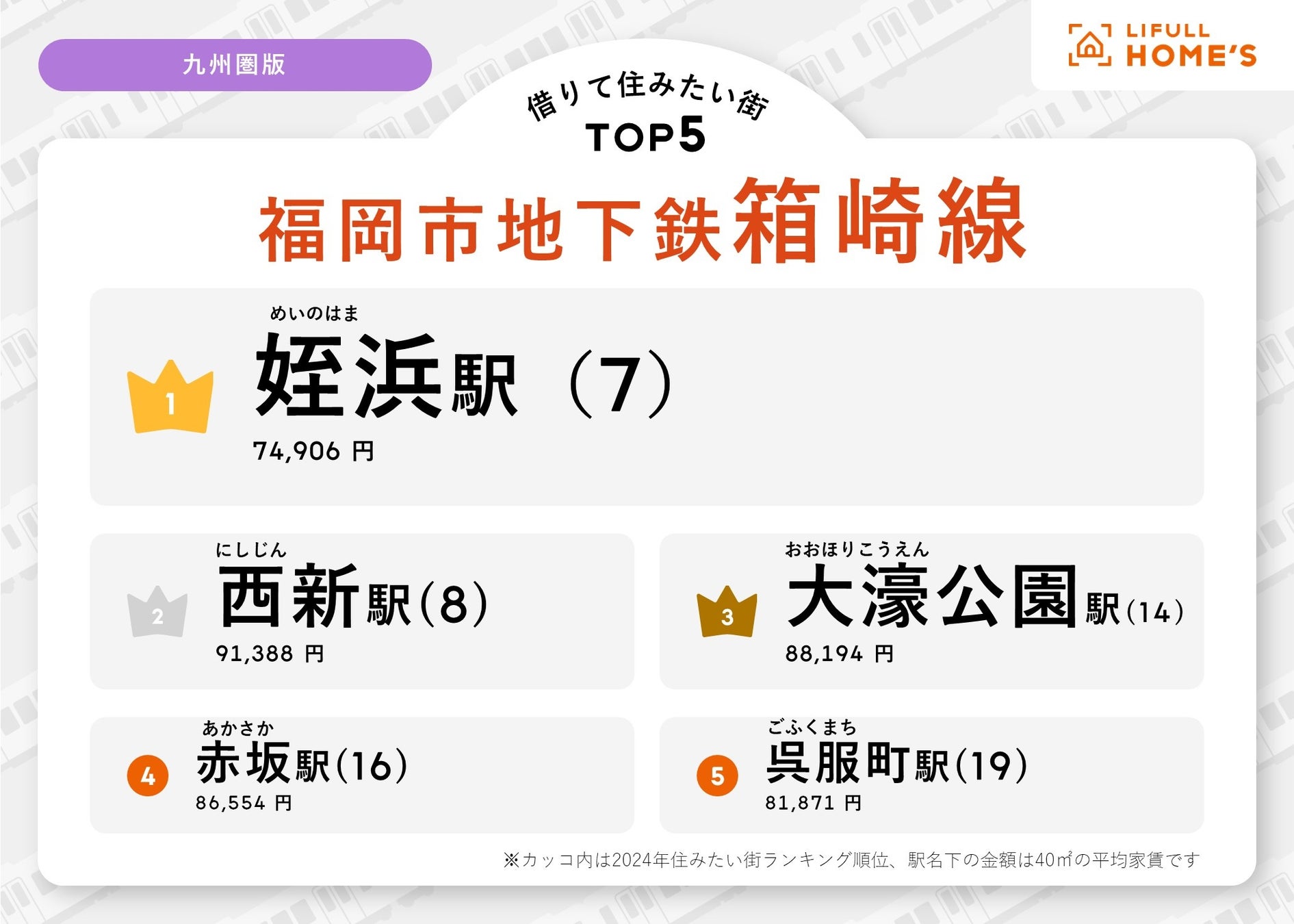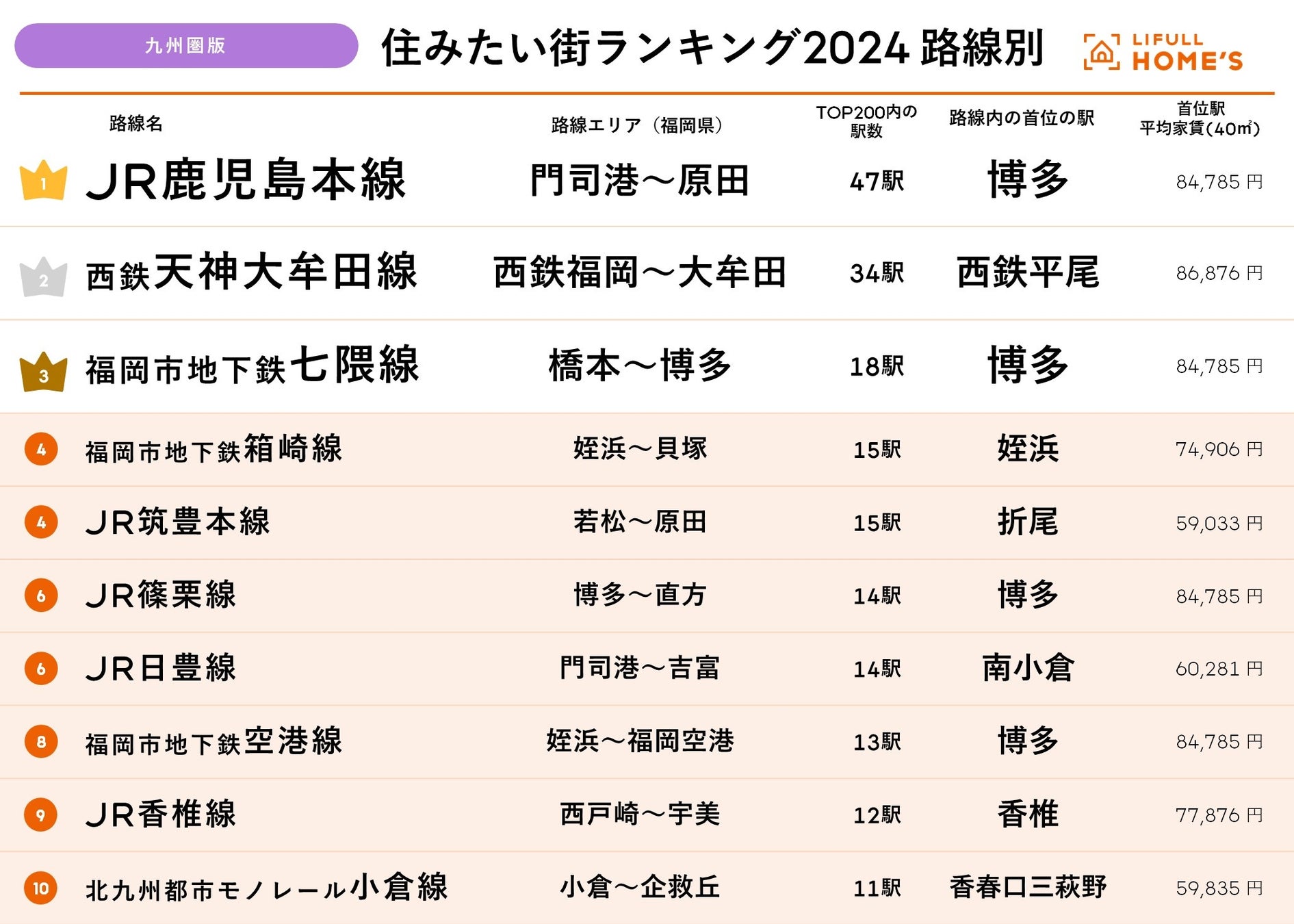 LIFULL HOME'Sが「賃貸物件の問合せが多い鉄道路線ランキング(九州圏)」を発表