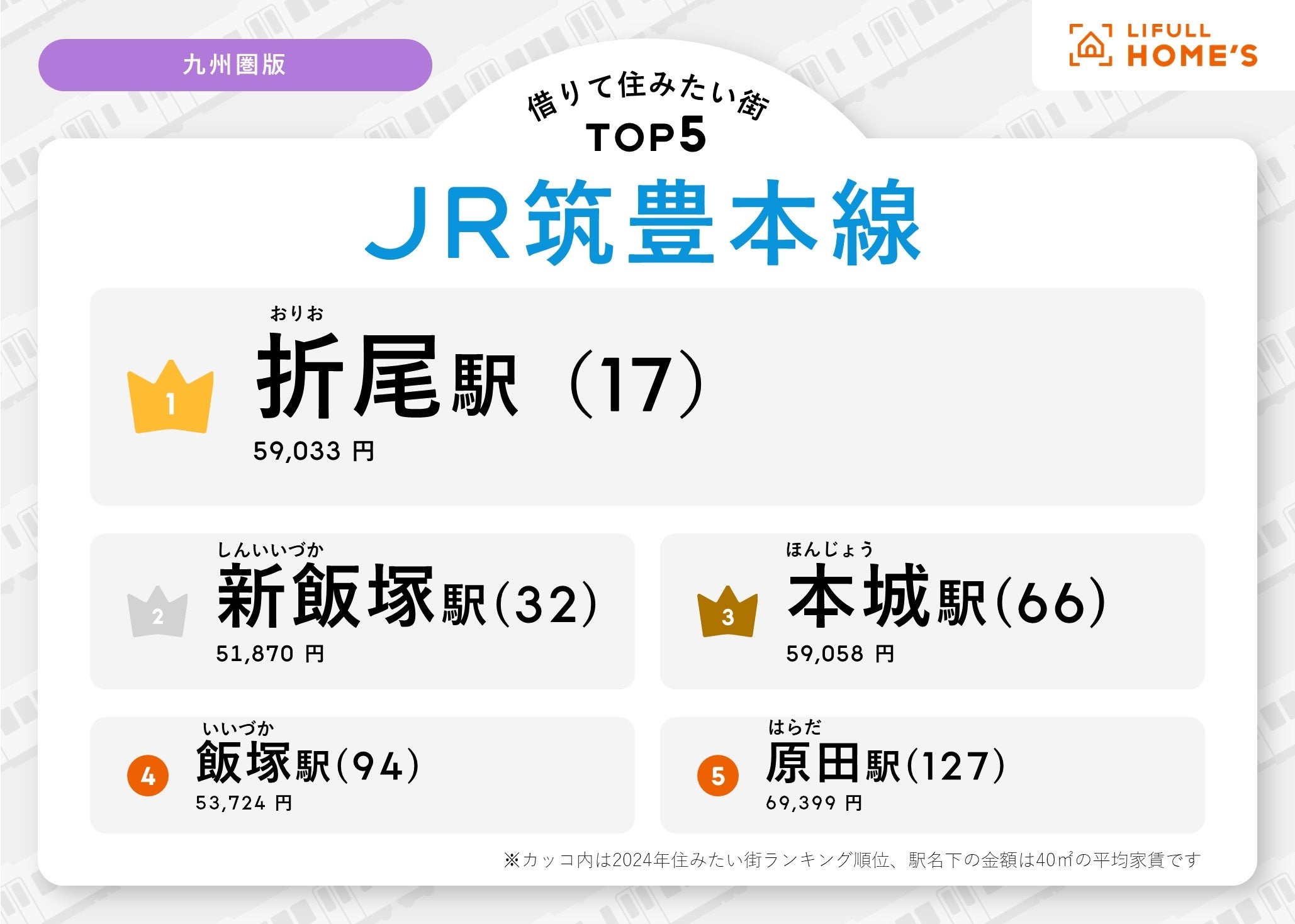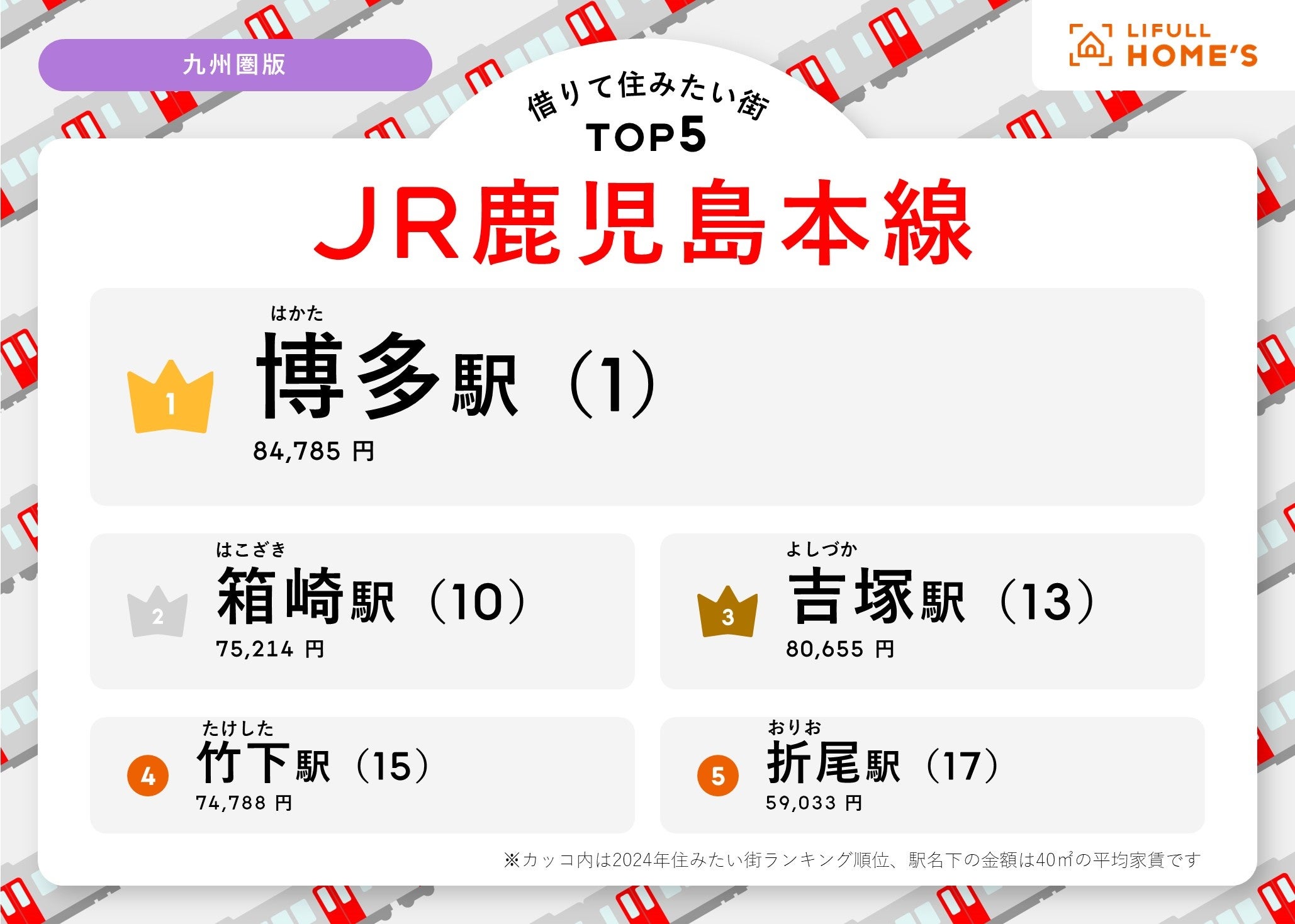 九州圏で「住みたい街が多い路線」は「JR鹿児島本線」2024年 LIFULL HOME'Sみんなが探した!住みたい街ランキング