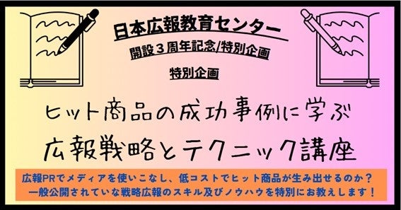 【日本広報教育センター特別講座のご案内】日本広報教育センター「ヒット商品の成功事例に学ぶ広報戦略とテクニック講座」セミナーを8月23日に開催!