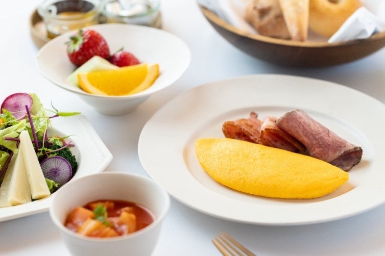 また、朝食は、穏やかな日差しと小鳥のさえずりの中で、那須の匠たちが生産した高原野菜のサラダ、ヨーグルト、ミルク、チーズ、ハム・ベーコン、地鶏卵料理、自家製ジャムなどを、木の間に映る水庭と共に、時間を忘れ、ゆっくりとお召し上がりいただけます。