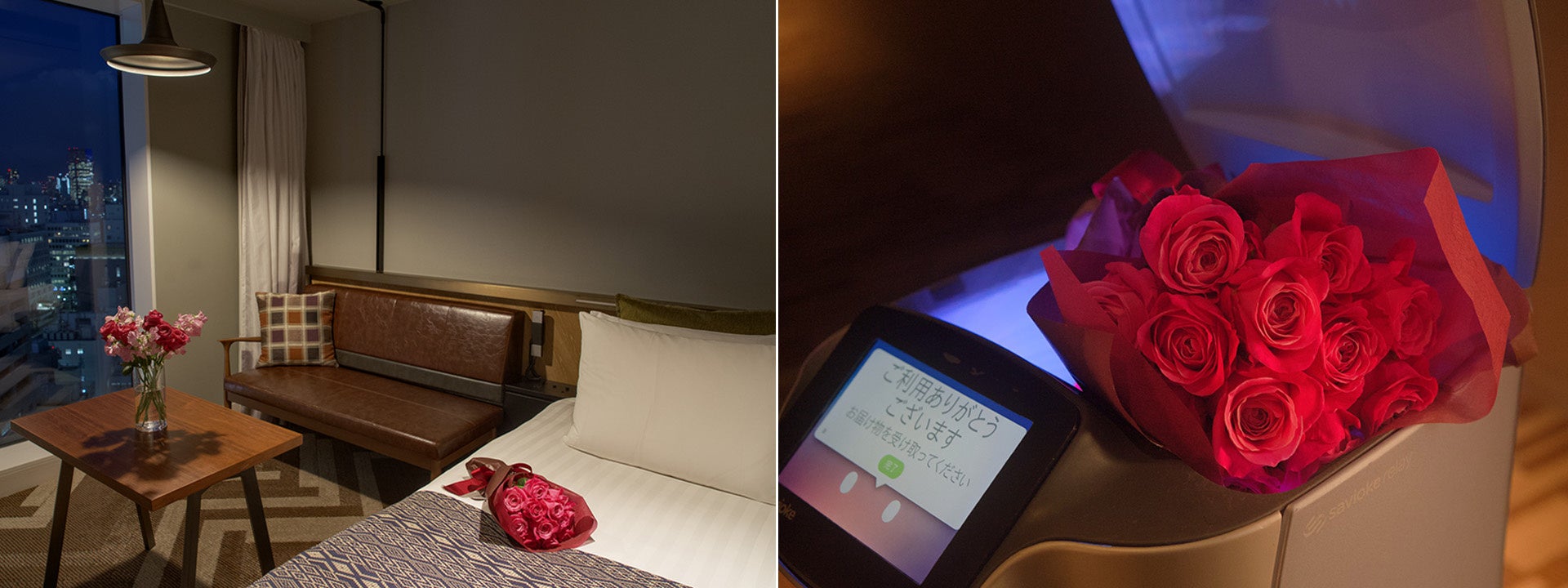 今回の「フラワーバレンタインステイプラン」では、日本一の花の産地である愛知県で生産された上質な花々を用い、客室内のテーブルに赤やピンクを基調とした素敵な卓上花をセット。渋谷の景色とともに大切な時間を彩ります。また、大切な人に贈る特別なブーケ「1ダース(12本)のバラの花束」は、デリバリーサービスロボット「Relay」がお部屋までお届けいたします。人とロボットが協働する渋谷ストリームエクセルホテル東急ならではのサービスが、大切な方と過ごす特別なバレンタインを盛り上げます。