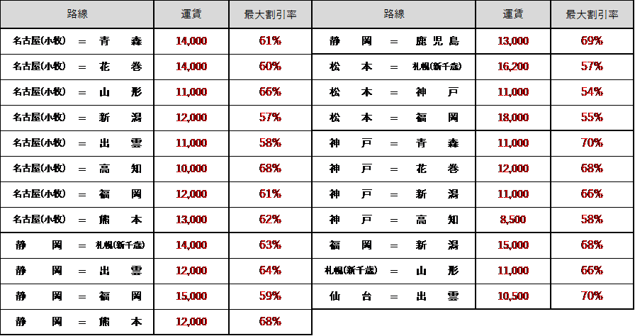 - 2022年10月30日(日)~3月25日(土) ご搭乗分の運賃について