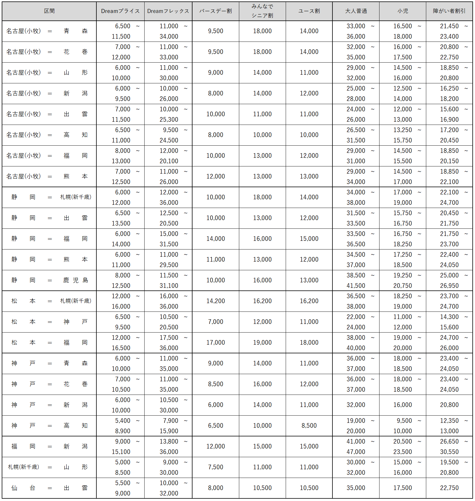 ・2022年夏ダイヤ期間まで販売していた『フレックスドリーム』、『ドリーム割』、『ひょいとe割』は、今回一斉発売します2022年冬ダイヤ期間の運賃より『Dreamフレックス』、『Dreamプライス』へと再編いたしました。