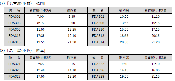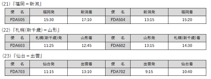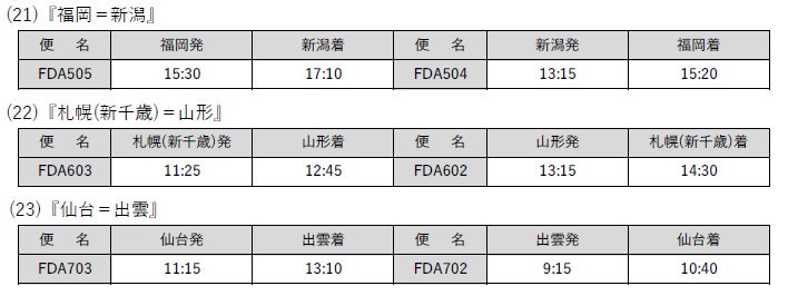(3)設定路線:FDAが運航する定期路線全便(チャーター路線は除く)