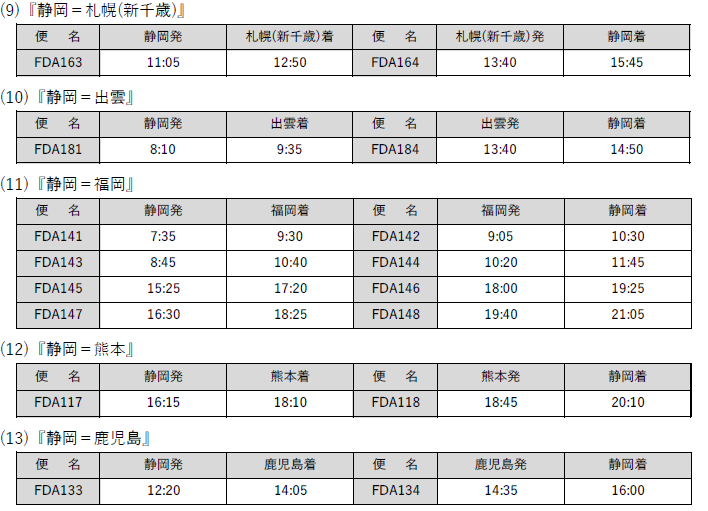 ■ 静岡空港発着路線