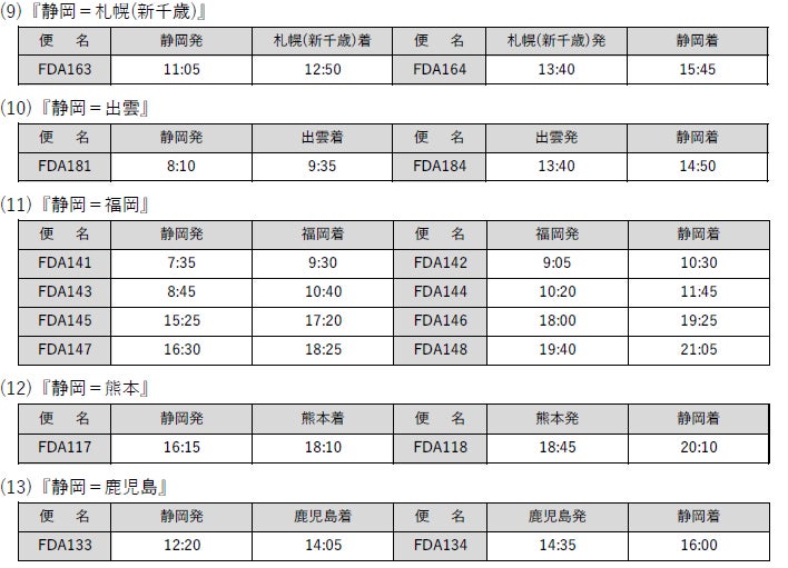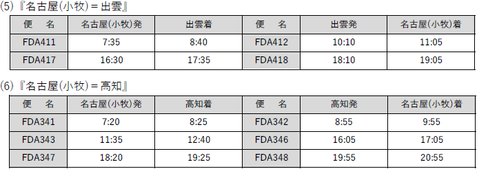 FDA 2022年10月30日(日)以降の路線・便数・各種運賃額について