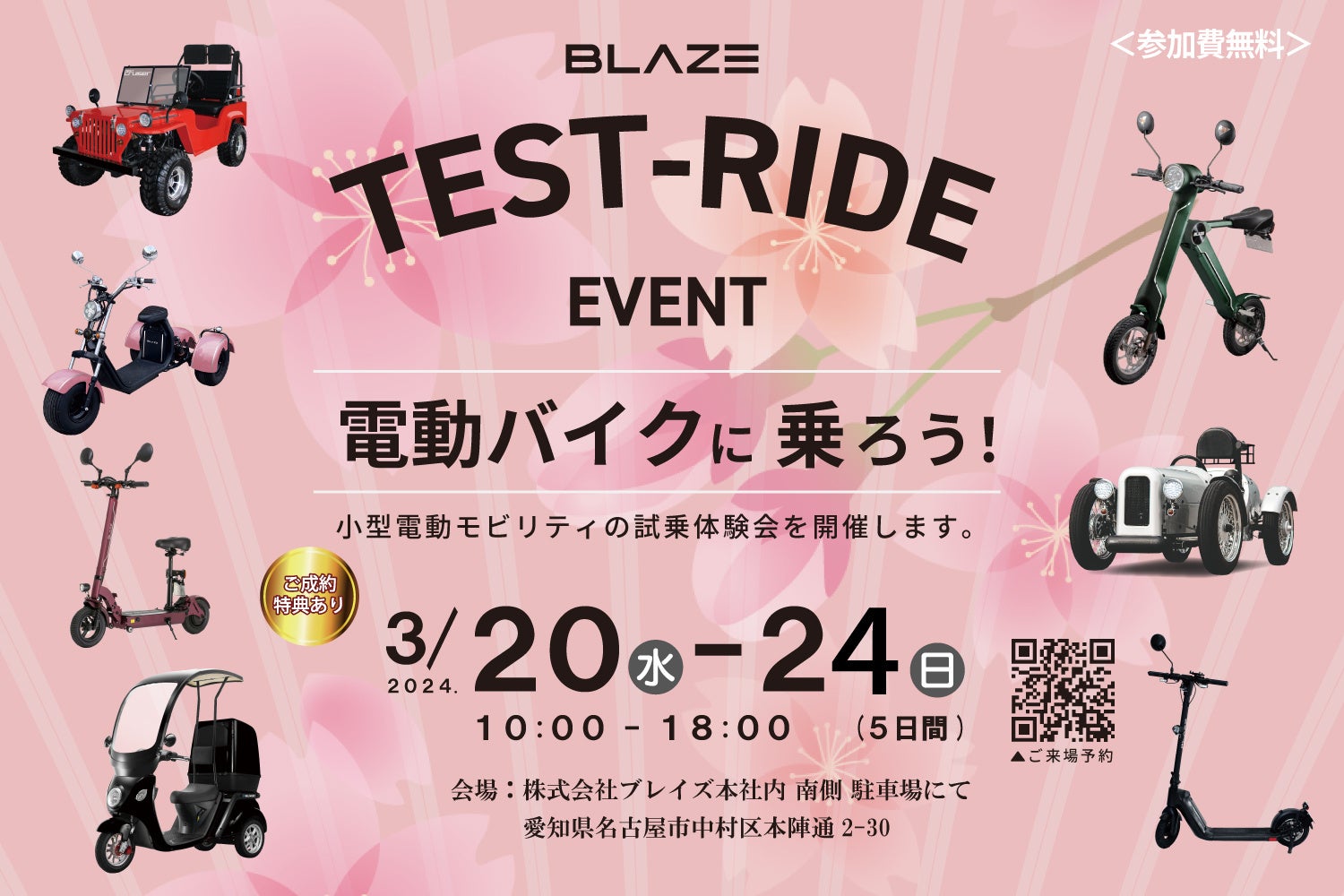 ブレイズ公式ECショップ(https://portal.blaze-inc.co.jp/)またはブレイズ公式楽天ショップ(https://www.rakuten.co.jp/blaze-onlineshop/)にてご購入の場合、車体価格より11,000円(税込)オフ!