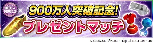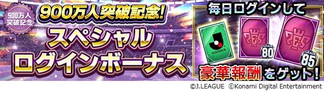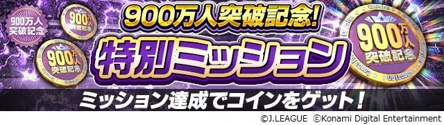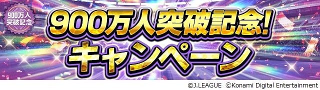 株式会社コナミデジタルエンタテインメントは、モバイルゲーム『Jリーグクラブチャンピオンシップ』(以下、『Jクラ』)の登録会員数が900万人を突破したことを記念し、皆さまへの感謝の気持ちを込めて、キャンペーンを開催しています。