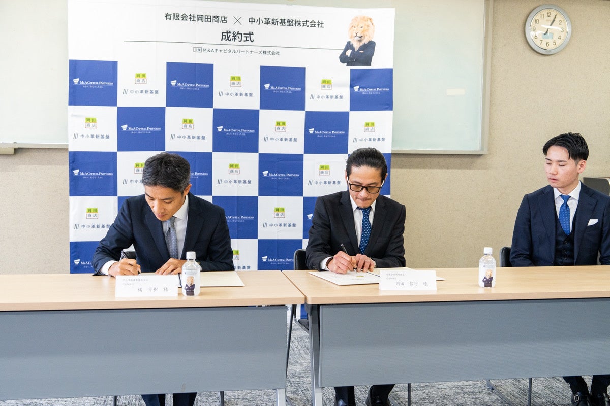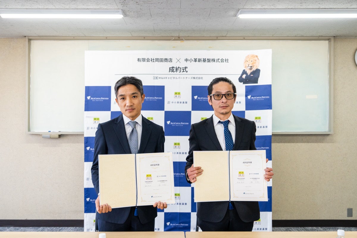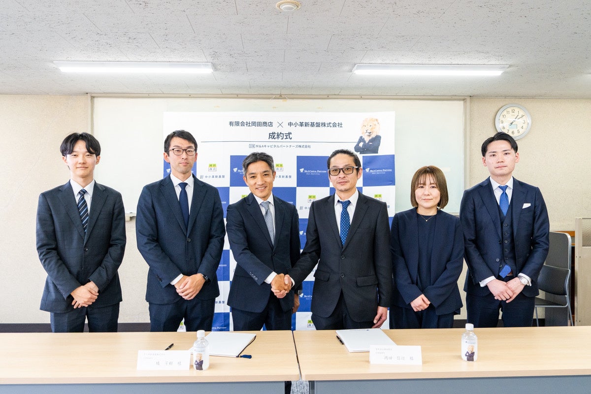 M&Aキャピタルパートナーズ株式会社(東京都中央区・代表取締役社長 中村悟)は、鳥取県西部で八百屋を運営する有限会社岡田商店と優良中小企業への経営支援を行う東京都港区の中小革新基盤株式会社の資本提携を支援。2025年11月28日に、鳥取県米子市の米子信用金庫本部にて、成約式を開催いたしました。