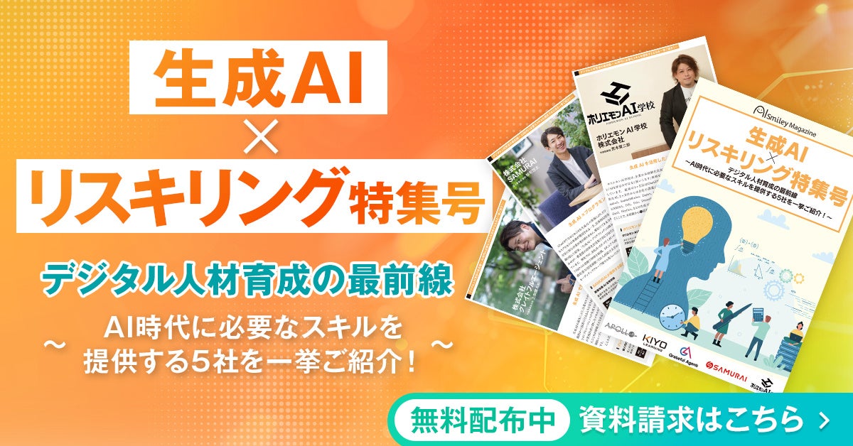 国内最大級のAIポータルメディア『AIsmiley』を運営する株式会社アイスマイリー(東京都渋谷区、代表取締役:板羽晃司)は、AI導入推進の一環として、「リスキリング」のユースケースやサービスの特長をまとめた「生成AI×リスキリング特集号」を2024年11月22日(金)から配信開始しました。