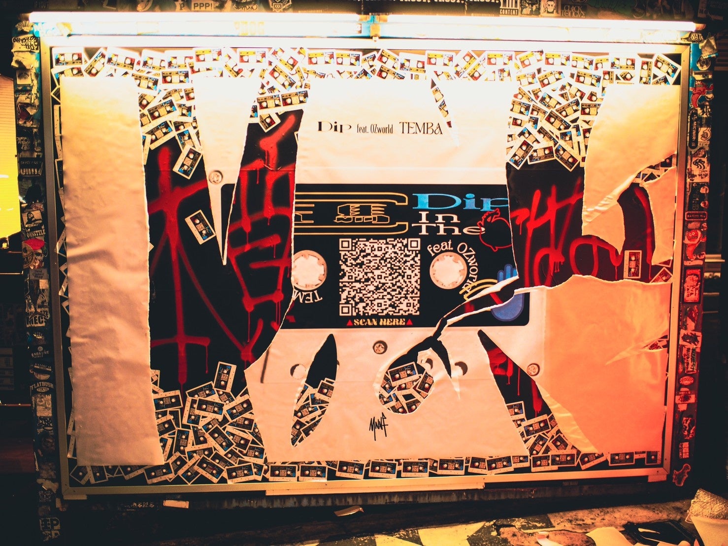 渋谷マンハッタンレコードにて覆面ラッパー「TEMBA」がストリートインスタレーションを展開!話題の新曲「Dip feat. OZworld」をイメージ化した自作巨大看板アートが堂々完成!