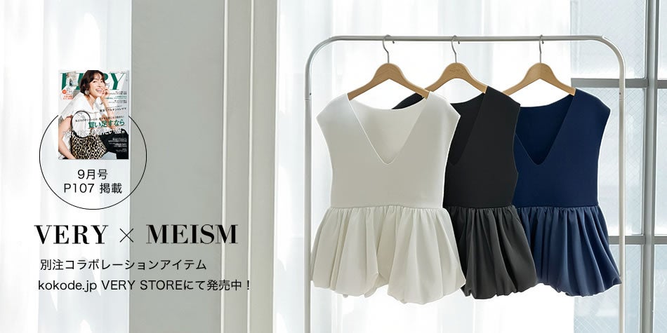 【MEISM by Re:EDIT(ミズムバイリエディ)】VERY STOREコラボのペプラムドッキングニットトップスを発売!雑誌VERY9月号にて掲載中