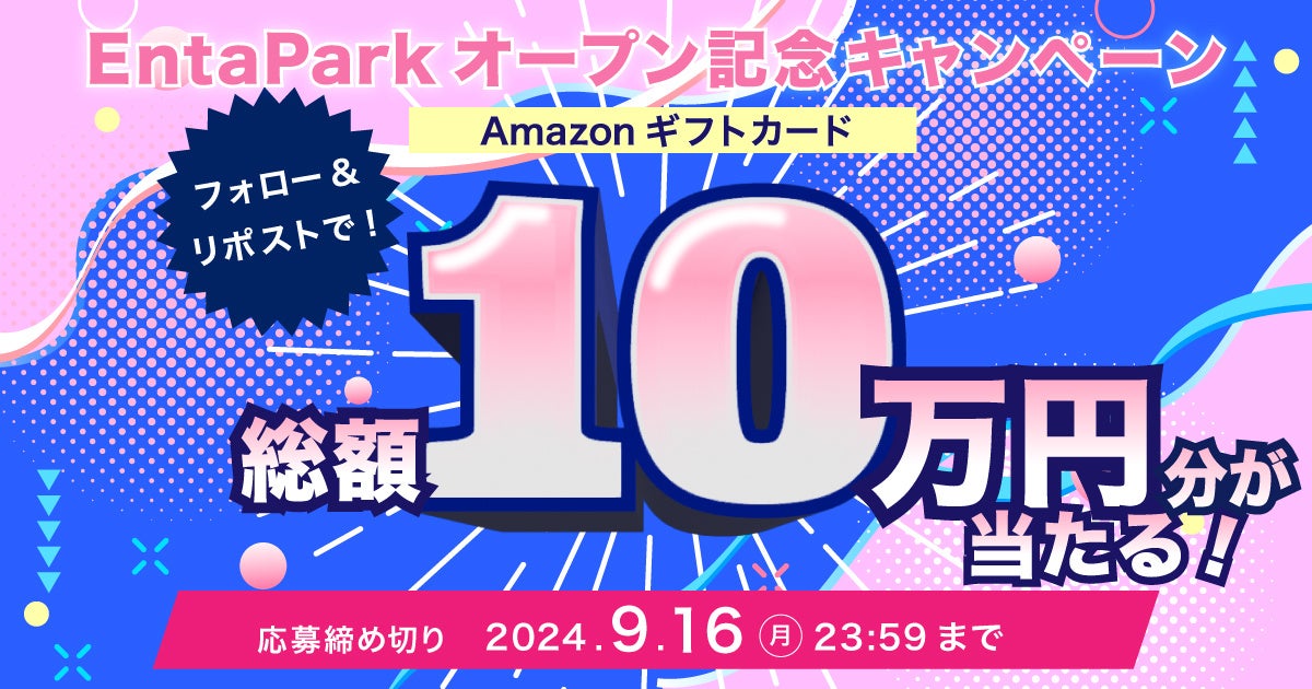 スポーツ報知を発行する報知新聞社(代表取締役社長・依田裕彦)は、この度、ウェブサイト「EntaPark(エンタパーク)」と「Baseball Post(ベースボールポスト)」を新しくオープンしました。オープンを記念して、Xアカウント(@entapark_jp)のフォロー&リポストキャンペーンを実施します。アカウントをフォローし、キャンペーンポストをリポストした方の中から抽選で15名様にAmazonギフトカード(総額10万円分)が当たります。