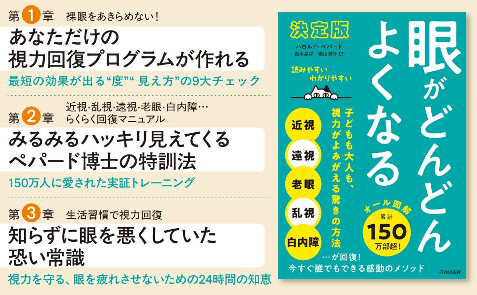青春出版社(東京都・新宿区)は『【決定版】眼がどんどんよくなる』(ハロルド・ペパード/著、高木長祥/訳、横山博行/訳)を4月11日に発売いたしました。