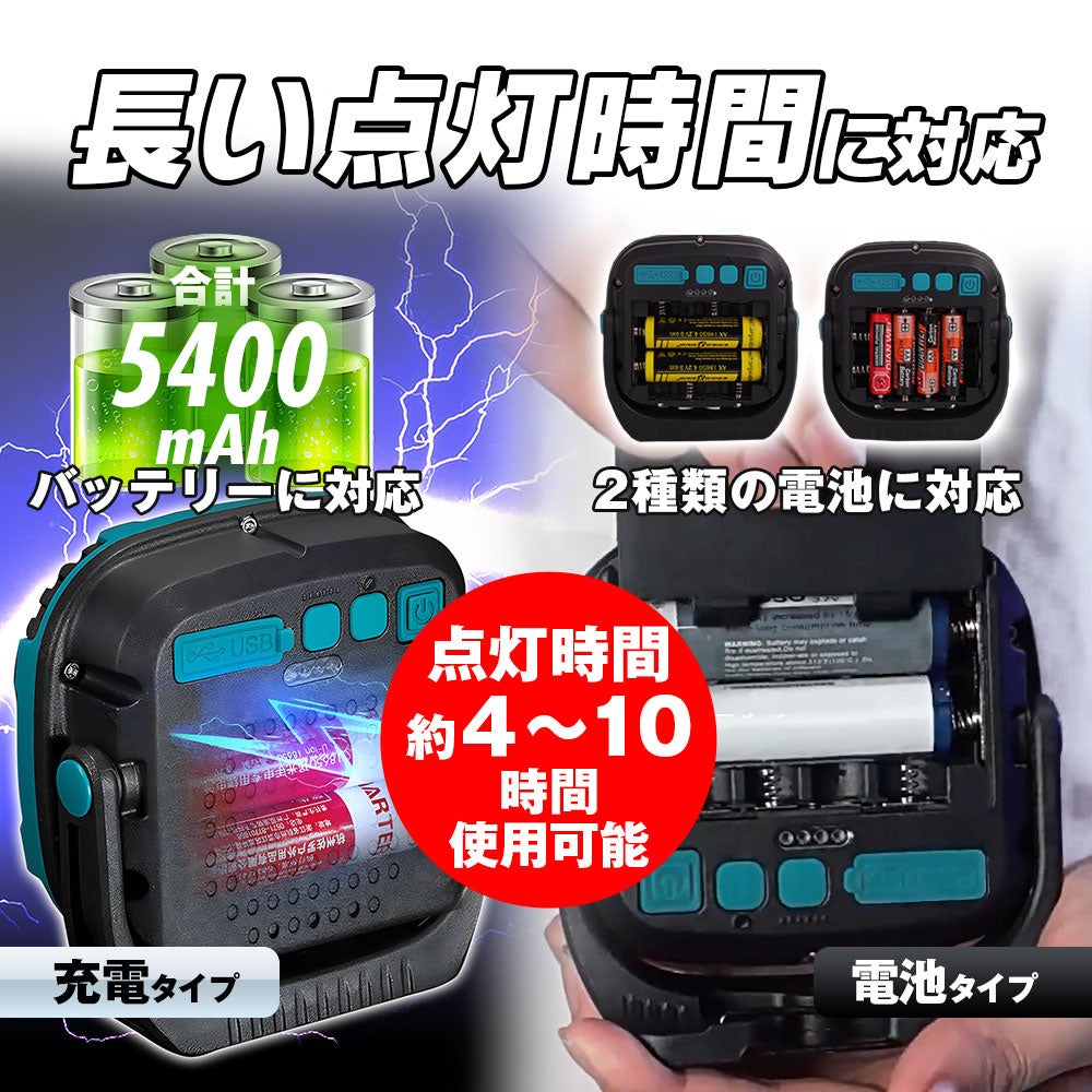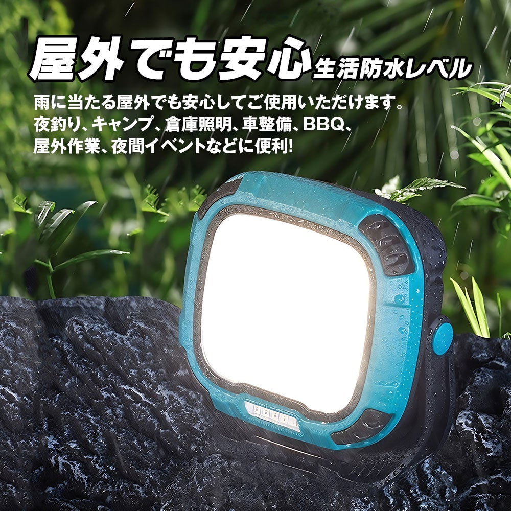 防水レベルは生活防水レベルで、雨に当たる屋外でも安心してご使用いただけます。夜釣り、キャンプ、倉庫照明、車整備、BBQ、屋外作業、夜間イベントなどに便利!