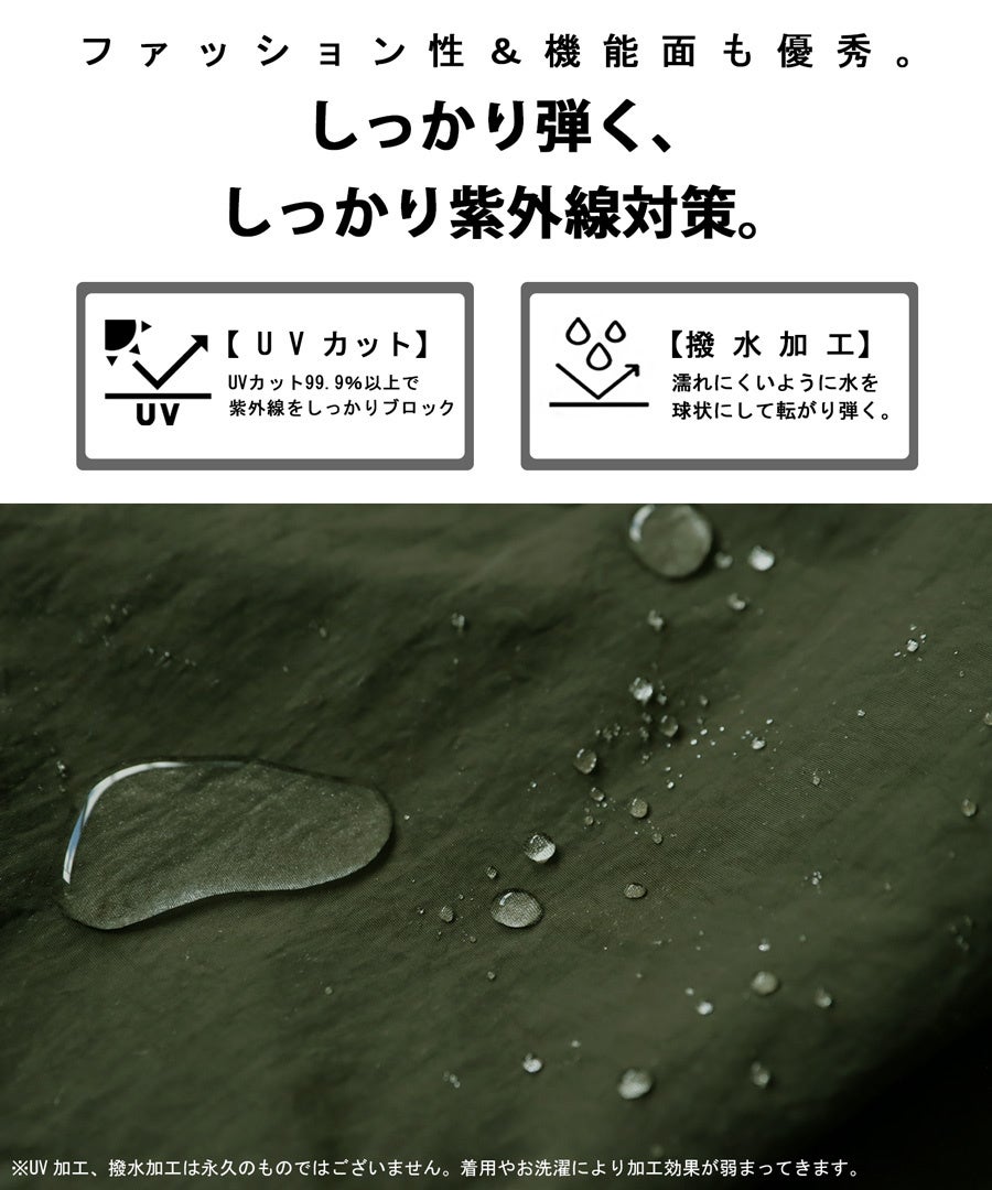 紫外線対策に嬉しいUPF30仕様で、紫外線を94%以上しっかりカットしてくれる優れもの。