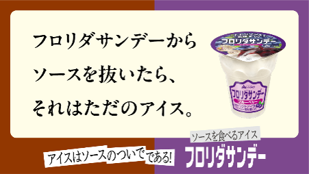 「アイスはソースのついでです。」 フロリダサンデーがまさかの内部分裂! ソースがアイスから独立宣言!? 「フロリダサンデー(ブルーベリー・チョコレート)ソースの逆襲パッケージ」