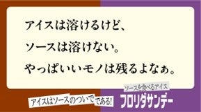ソースの逆襲キャンペーンに伴い、2025年9月24日(水)よりソースがフロリダサンデーのHPを乗っ取った特設サイトを公開いたします。ソースが逆襲に至った経緯について語る声明文や、ソースがメインであることを主張するソースの逆襲広告を掲載。長きに渡りアイスの引き立て役として陰に隠れてきたソースの溢れ出る想いをぜひご覧ください!