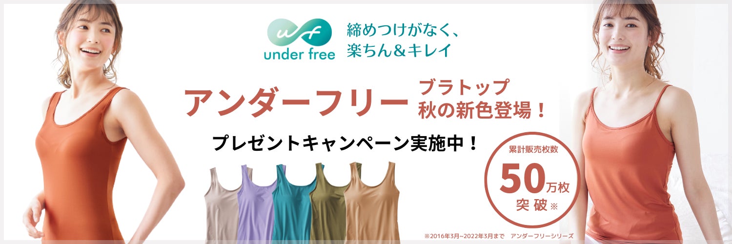 累計販売50万枚を突破したニッセンのブラトップ「アンダーフリー」シリーズに秋の新色が登場!9月7日から抽選でその場で当たるプレゼントキャンペーンを開催!