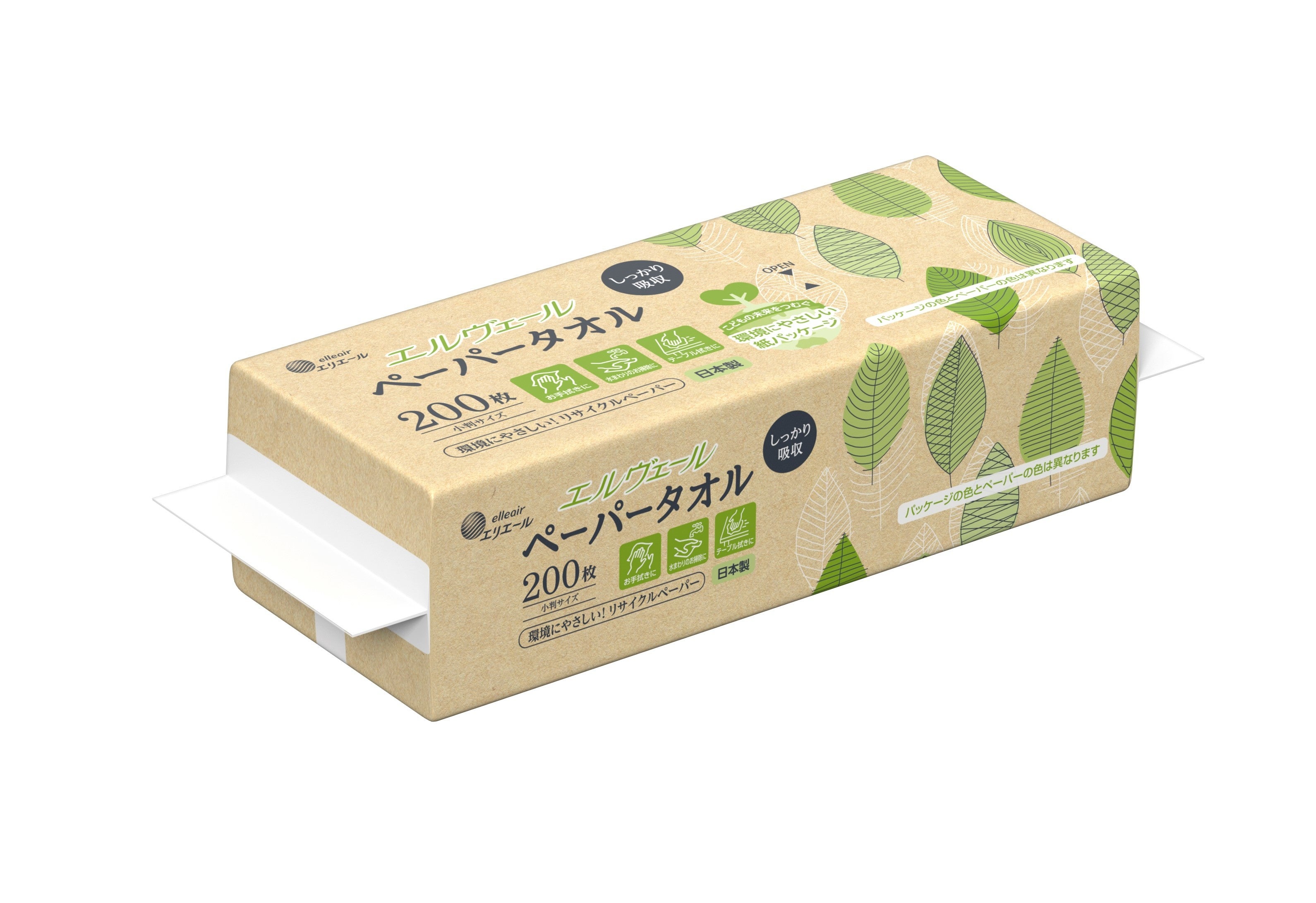リサイクルパルプ100%のペーパータオルがさらに環境にやさしく!「エルヴェール ペーパータオル」 紙包装パッケージ発売
